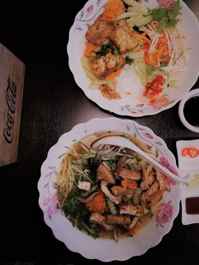 We had: Vegetarian Pho with fried tofu, Vemicelli with tofu and lemon.