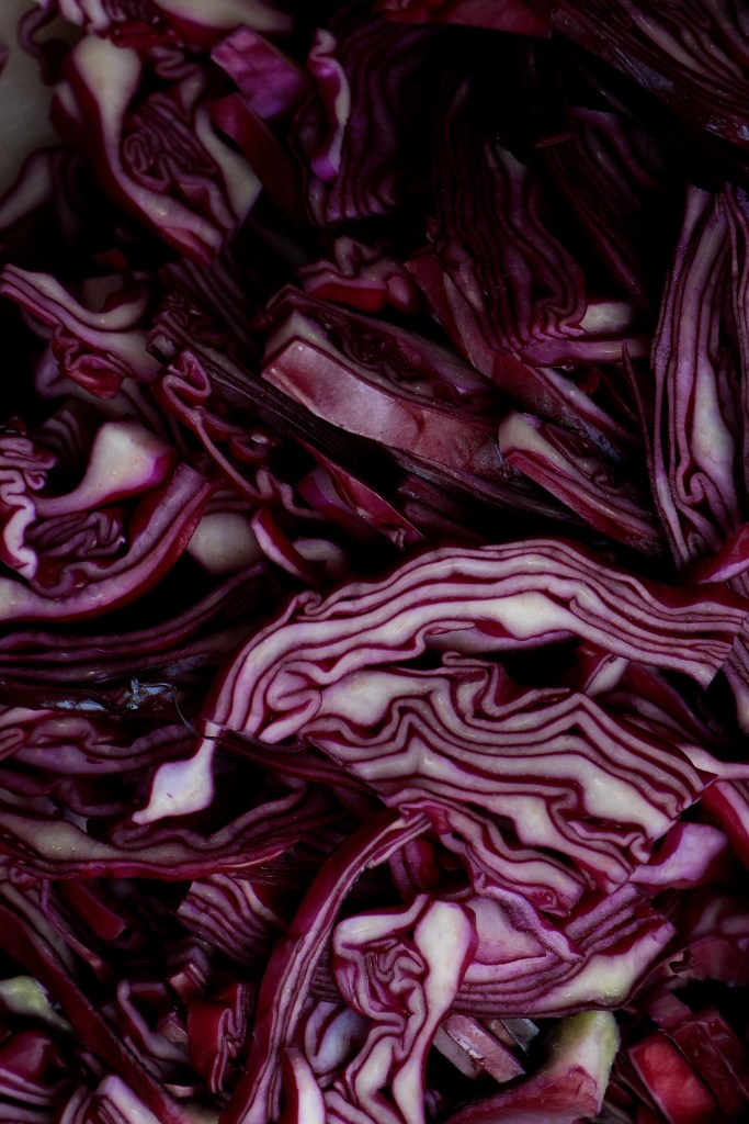 Red cabbage is a real winter vegetable. In Germany it’s part of nearly every traditional Christmas meal. We normally cook it for a long time until it’s really soft. Sometime too soft for my taste. Don’t get me wrong: I love a good traditional red cabbage with apple and spices. BUT: red cabbage is great in so many ways. We shouldn’t always eat it the same way. So here comes a recipe which could easily accompany you Christmas meal if you are willing to cook something new. If you like to go with the traditional recipe you could always enjoy this salad on another occasion.