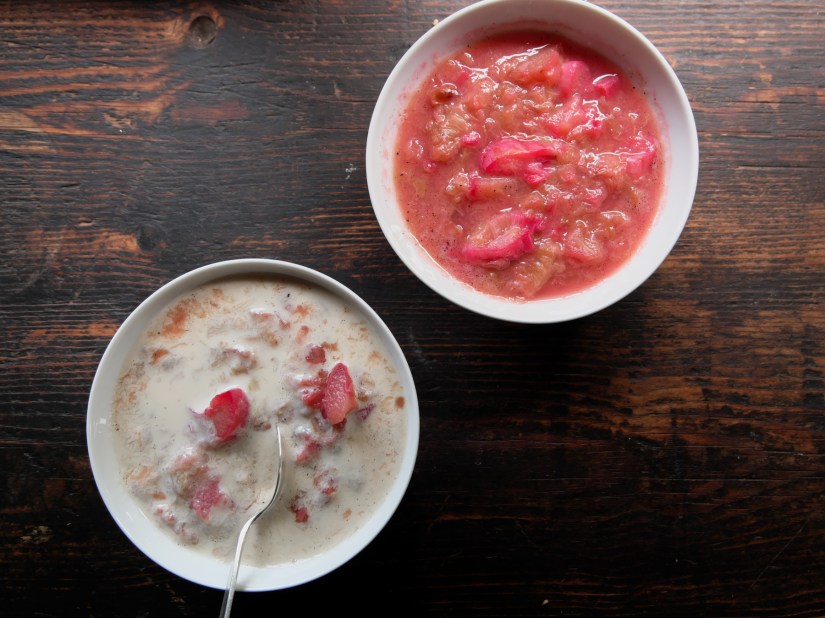The rhubarb is cooked shortly with a couple of dates and served with slightly warm with oatmilk…How does this sound to you?